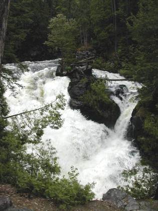 The falls is not as steep as it appears. It is actually longer than it is high, but like many such falls, when viewed head on it looks higher and steeper than it is.
