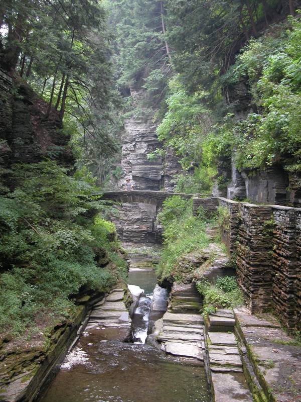 The 2 mile long gorge trail leads from the parking area by the Lower Falls, up the glen to an old mill at the top, passing Lucifer Falls and several small falls along the way.