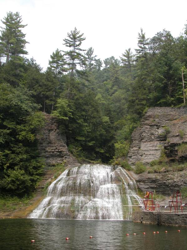 The Lower Falls are near the east entrance to the park at the mouth of the Glen. There is a swimming area at the base of the falls, complete with a diving board and life gaurd.
