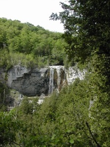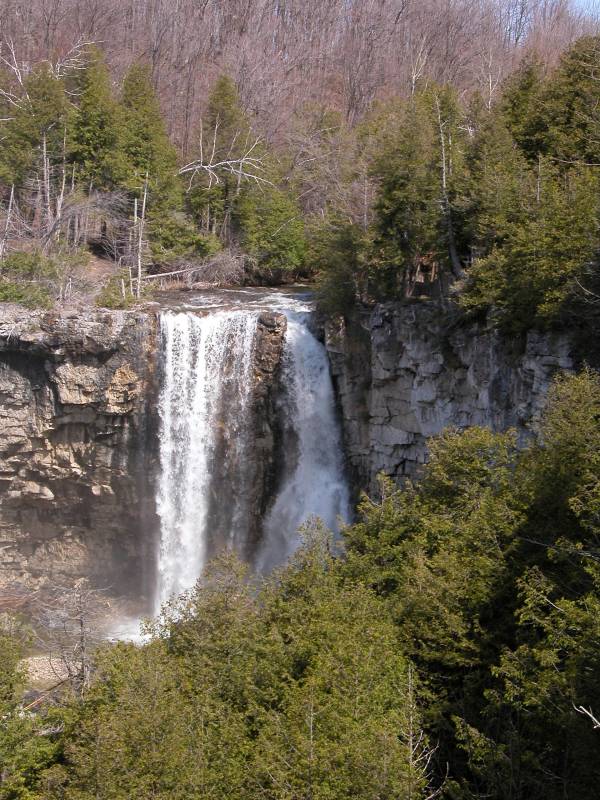 The falls are in the Eugenia Falls Conservation Area. For some reason, the picture on that website is reversed. That must be a picture of the falls admiring itself in the mirror. A nice description of nearby waterfalls can be found in Waterfalls of Grey County.