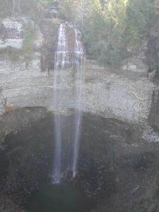 This is an easy waterfall to visit. A short walk from your car takes you to an overlook that provides a wonderful view of the falls, as well as wonderful views of the Cane Creek Gulf. A trail leads to the base of the falls. The trail has stairs and some steep sections. The overlook is considerably higher than the brink of the falls, so the descent to the base must be close to 300 feet. When the water is high, the view from the base must be spectacular.
