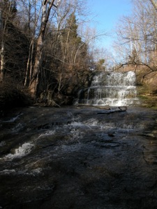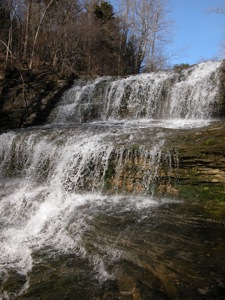 The falls is close to the source of the creek. I imagine this falls gets pretty thin in dry weather. It was flowing nicely in March.