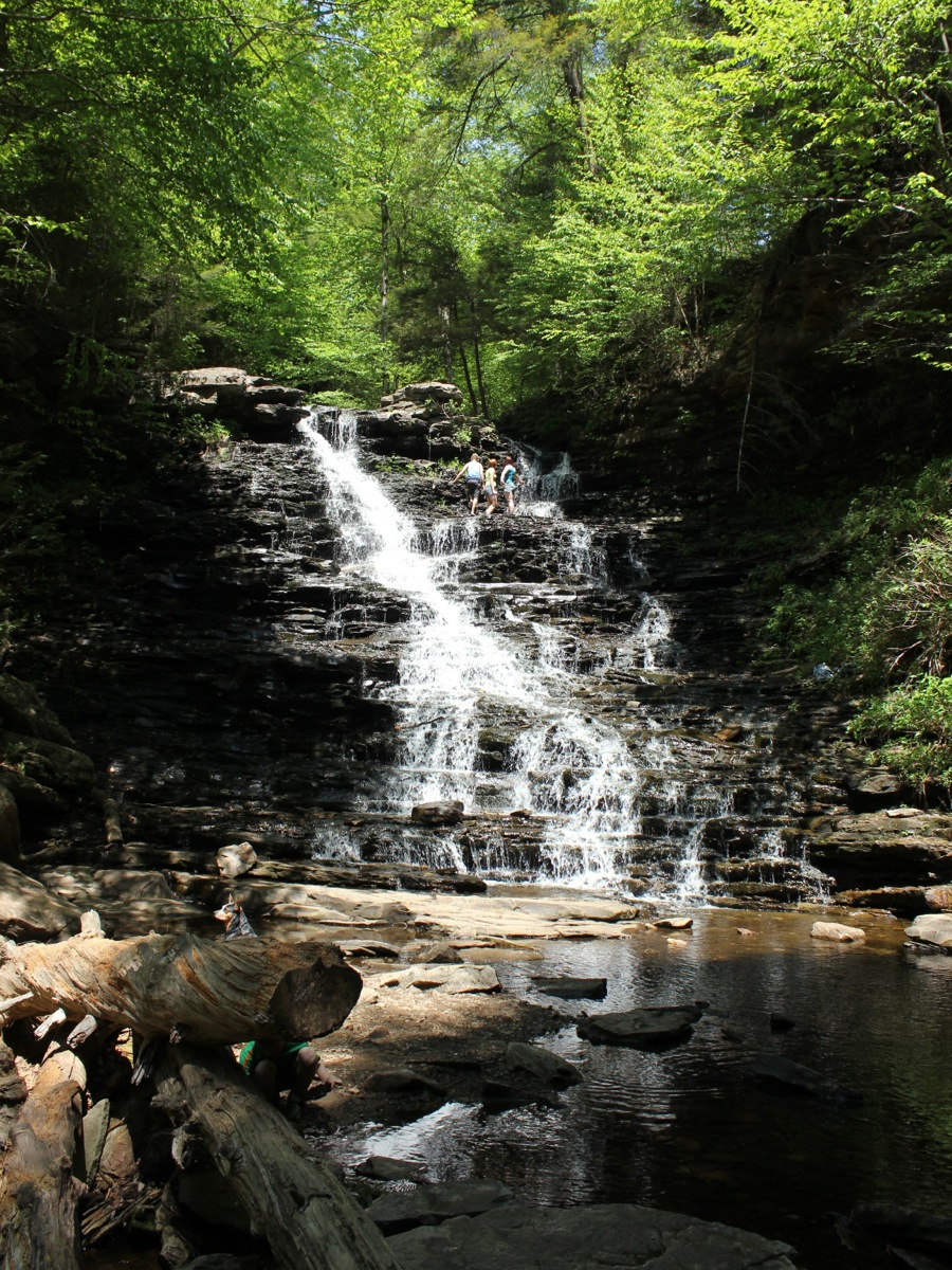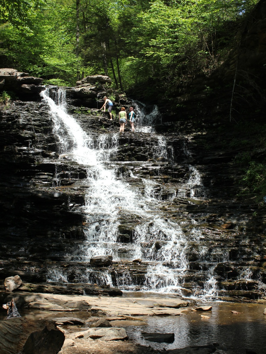 Onondaga Falls is a tenth of a mile upstream. Shawnee Falls and Huron Falls are both .2 miles downstream. The much bigger Ganoga Falls is about a mile and half hike away. Dozens of other waterfalls can be found within a 50 mile radius.