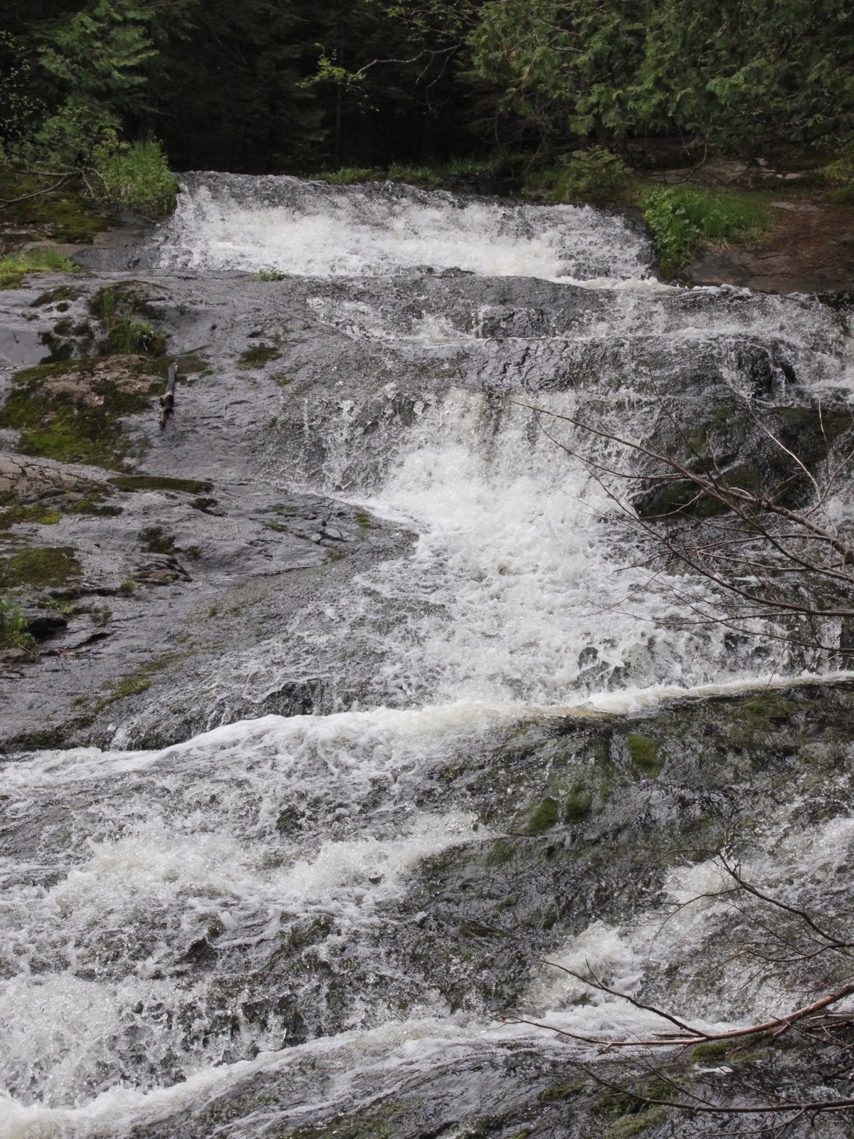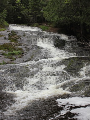 Big Falls is 7 miles to the west as the crow flies, and West Yellow Dog Falls, is 8 miles to the south as the crow flies, but the actual travelling distance is much more and requires travelling more rough roads in both cases. If you are comfortable travelling Northwestern Road, you can continue east for 20 miles, and visit Pinnacle Falls.