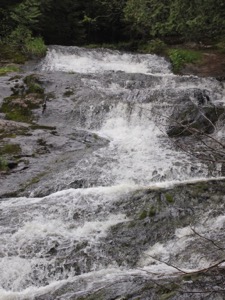 Of all the waterfalls in Michigan, this is one of the most challenging to reach. You really need a Jeep or truck capable of handle some rough, rocky and muddy two tracks. It is about 7 miles as the crow flies from the nearest paved road. The shortest route to the falls is from Skanee Road. Head east to the end of Skanee Road, and continue east on the unpaved, but well maintained, Erick Road. After 1.3 miles you will reach the bridge over the Huron River, and Big Ericks Falls. After here the roads get much rougher. Continue east on Ericks Road. There are no road signs, and lots of turns and side roads, but if you just continue on the largest road, and tend to the right, you will stay on Ericks Road. After 4 miles, take a left on to Northwestern Road. It is not very apparent that this is a different road, as Northwestern Road becomes the main road at this point. Continue for another 2.2 miles with lots of sand and pines. The main road turns south here, and a small two track heads off to the left. If you miss this, there is another turn off about 200 feet beyond that. These two meet up, and head north east. This is a very rough two track, with lots of rocks and mud. Follow this road for about 2.5 miles, staying to the right. You will pass the Cliff Falls Hunting Club. There is a small pull off near the falls, and the falls are audible from the road.