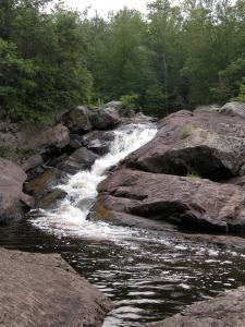 There are a lot of waterfalls in this area. Wren Falls is about 3 miles to the west. Unfortunately Sullivan Fire Lane does not cross the river, so it is a long trip to Wren Falls if you came in from 122. Potato Falls are downstream. By car they are 17 miles away. The small Upson Falls are in Upson. If you head north on 122 for 10 miles it will take you straight to Superior Falls.