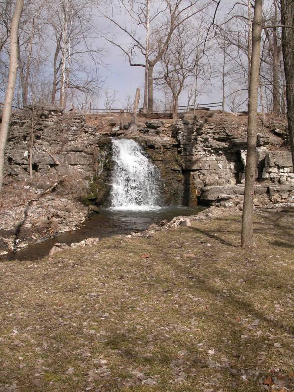 France Park Falls is in France Park, a county park a few miles outside of Logansport Indiana along US 24. The park is located at an old quarry. It is not clear if the falls are entirely natural. The creek tumbles over a wall of exposed bedrock. I do not know if this was part of a quarry or not. The area around the falls has been landscaped.