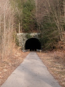 In addition to the falls, this spot features two other attractions. The first is an old very well preserved stone furnace. This is located just a few hundred feet downstream of the falls. Further downstream you will find the Allegheny River Trail and the mile long Rockland Tunnel it passes through. The Rockland Tunnel is open to non-motorized travel only. The tunnel leaks a bit at the eastern end, and in March there was a lot of ice on the path.