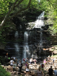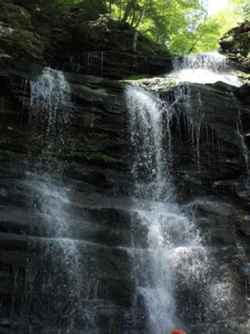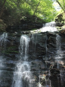 Ganoga Falls it the fourth falls from the top of Ganoga Glen, but it is first of the large falls. The easiest way to see the falls is to park at the Rose Lake parking area and hike the half mile down the glen trail to see the falls. It is all downhill, and the trail drops at least 250'. If you are going to take the time to see Ganoga Falls you might as well make the extra effort and visit all the falls in the park.