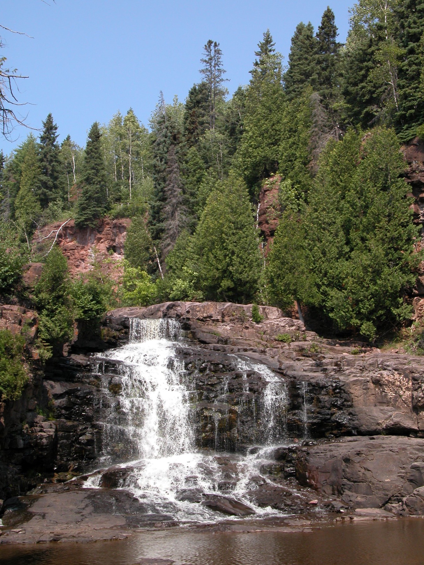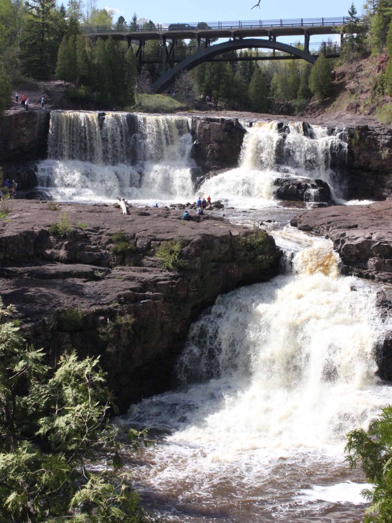 The Middle, Upper and Fifth Falls are all in the same park. Heading north on Highway 61 you will find the High Falls of the Baptism River, the Illgen Falls, the Caribou Falls, Cross River Falls, the Upper Falls of the Brule River, and finally High Falls of the Pigeon River, plus many others along Minnesota's north shore.