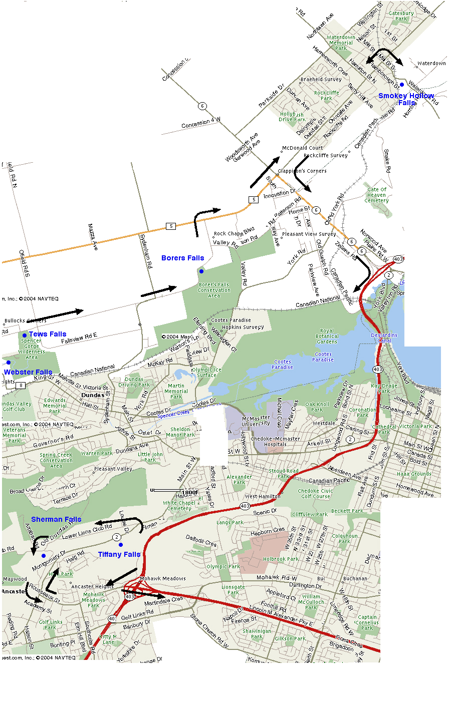 Here is a possible tour of some of the Hamilton falls, starting at