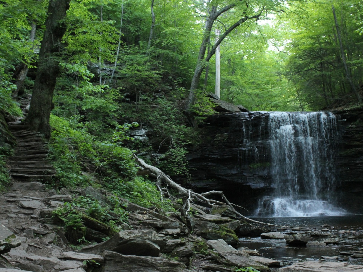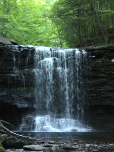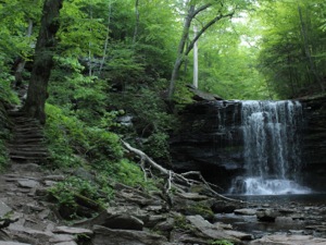 Sheldon Reynold Falls is about 200 yards downstream. Wyandot Falls and Erie Falls are a quarter mile upstream. Ganoga Falls and a dozen other waterfalls are all within a 1.5 mile walk. Just a few miles to the west the wild Big Falls can be found. 50 miles to the east in Scranton is Nay Aug Falls. Dozens of other waterfalls can be found within a 50 mile radius.