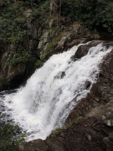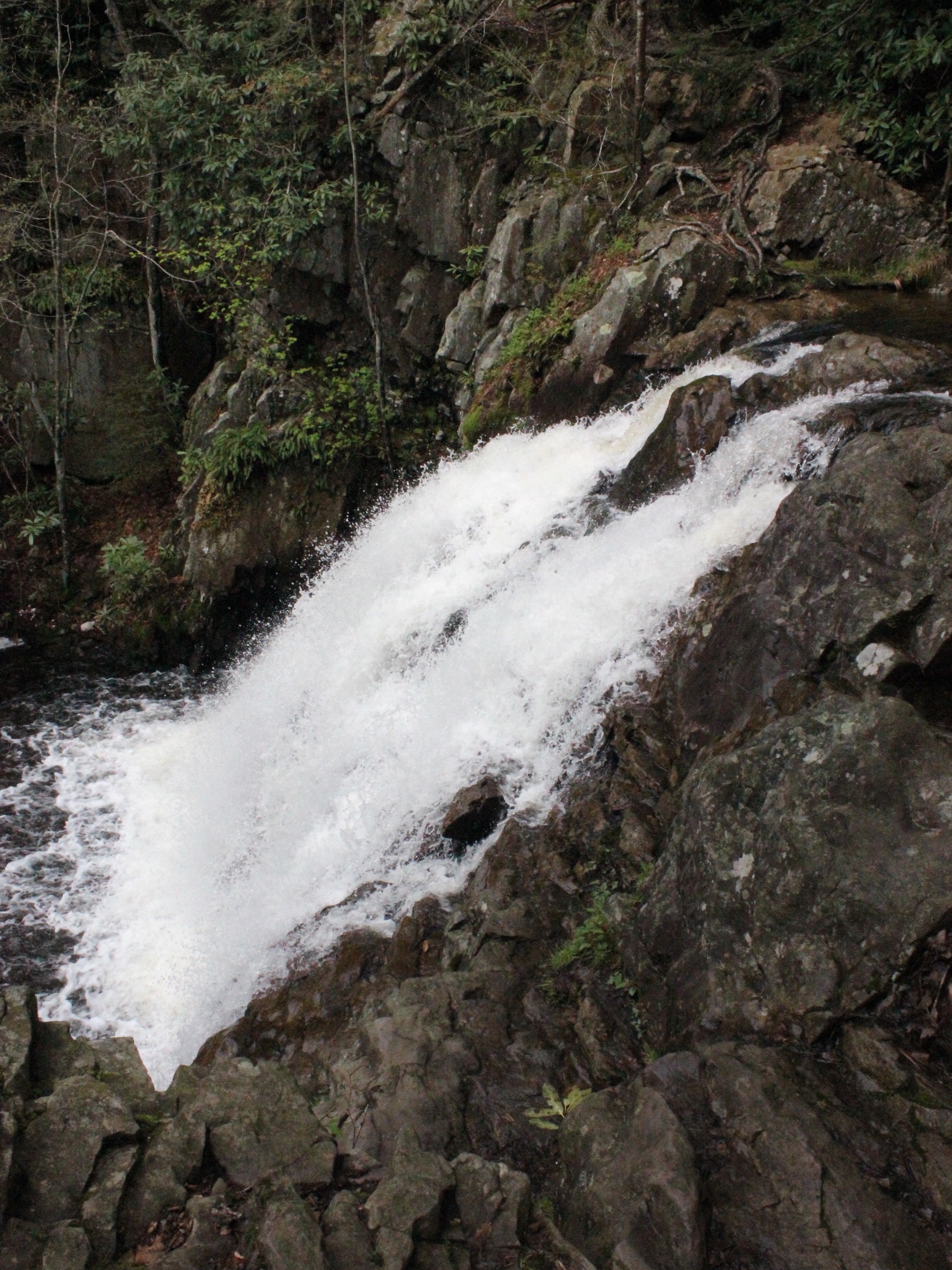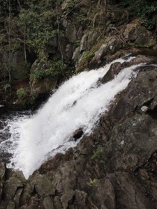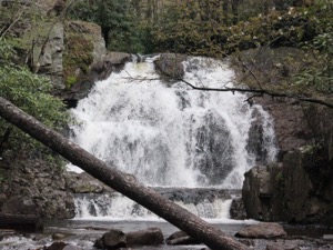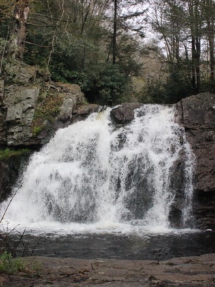 The trailhead of the falls is located off of Route 534, just east of where it goes under I-476. There is a parking area on the south side of the road. The trail starts at the guardrail where 534 crosses Hawk Run. The trail is fairly easy. The trail will take you to the top of the falls, or you can continue down to where Hawk Run enters Mud Creek below the falls. There is a large rock shelf below the falls from which you can get a nice view of the falls, but you either have to climb down to it from above, or climb up some large rocks from below.