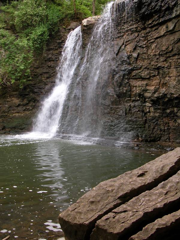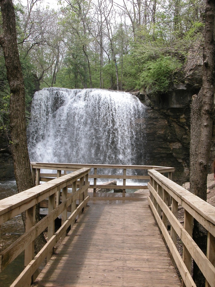 A stairway down into the gorge and a boardwalk near the base of the falls were added sometime after 2005. Before that the gorge was entirely wild looking, despite having houses line the southern edge of the gorge, and being just a few miles away from a major mall. The stairway is nice, but the boardwalk is a bit much, particularly because the trail from the stairway to the boardwalk is just as wild as before, and requires a stream crossing when the water is up. In high water, the boardwalk will still be inaccessible.