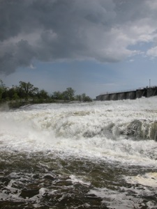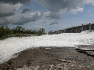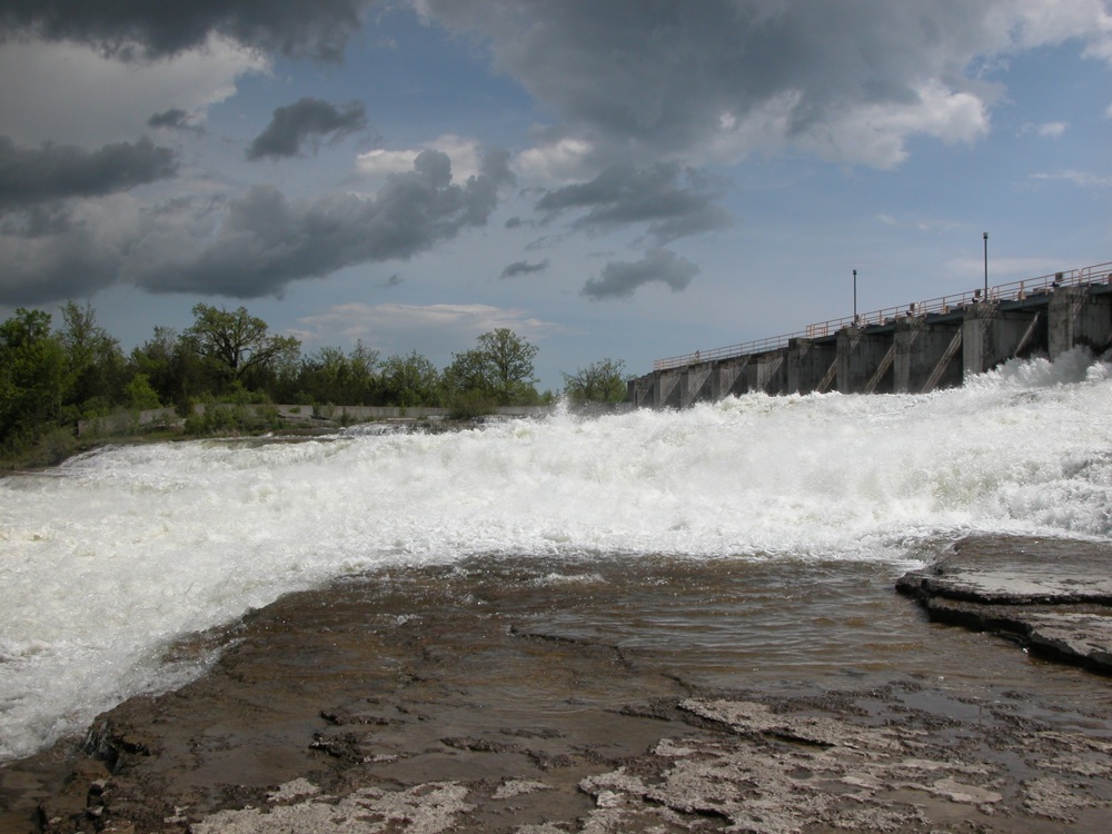 Healey Falls is a wide falls on the Trent River, located in the settlement of the same name, about 10km north of Campbellford. The Trent River pours over a number of ledges with a total drop of 10 meters or more. The width of the falls is around 25m, although this will vary with water flow. A large dam sits at the crest of the falls, detracting considerably from the falls appearance. But when the water is flowing, this is an impressive and noisy falls.