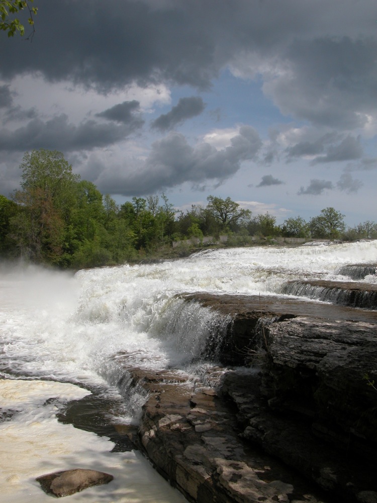 The falls can be accessed from a small dirt road along Route 50 on the north side of the river. The road leads to a small turn around and parking area next to the falls. There is much better signage for the Healey Falls locks on the south side of the river, but you cannot see the falls at all from the locks.