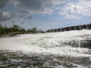 The Trent River is part of the Trent-Severn Waterway. Locks 15, 16 and 17 take boats past the falls. The total lift of the three locks is 22m.