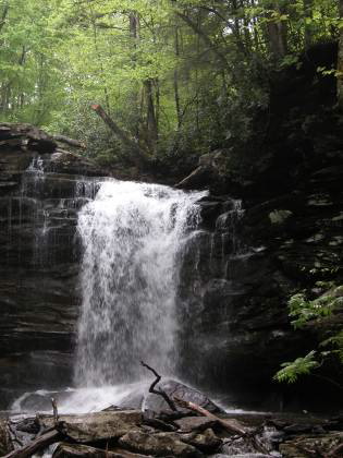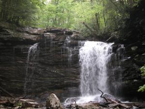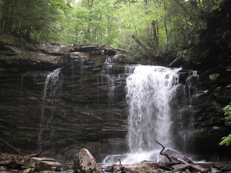 Middle Hill Creek Falls is in the Monongahela National Forest, near Marlinton, West Virginia. The Falls of Hill Creek Scenic Area can be reached from the Highland Scenic Byway (Route 39/55). They are about 5 miles west of Route 219.