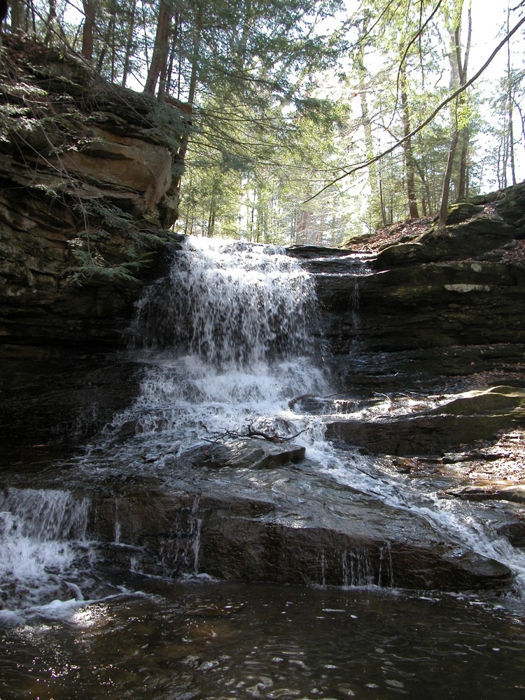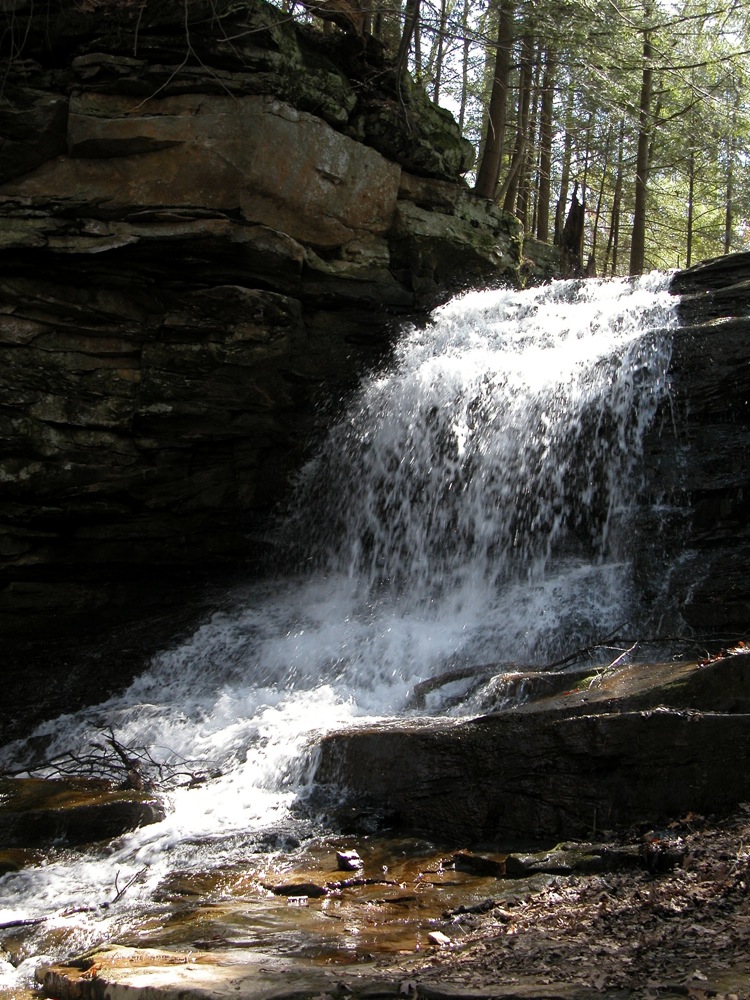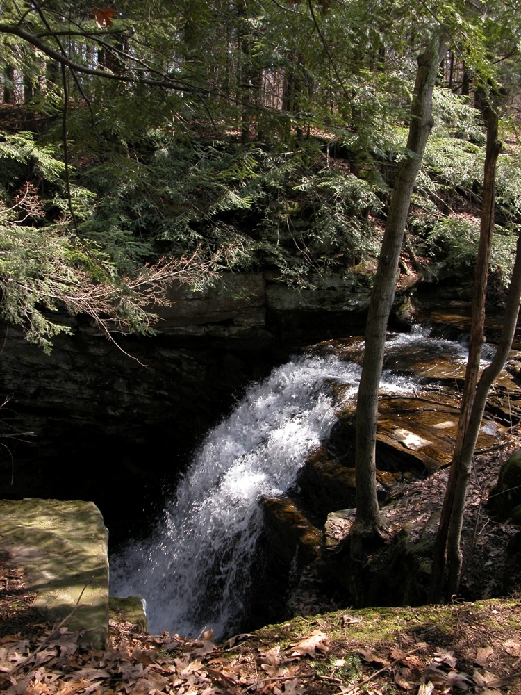 Honey Run is a very short creek. This waterfall can get very thin in drier weather. Like many waterfalls, it is best seen in the Spring.