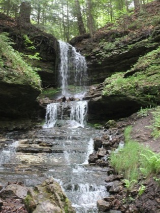 Horseshoe Falls is located in the middle of Munising, just a few blocks away from M-28. This is a privately owned waterfall. In 2012 it cost $5 to visit the falls. The waterfall is located at the end of Bell Avenue. Signs on M-28 will guide you there.