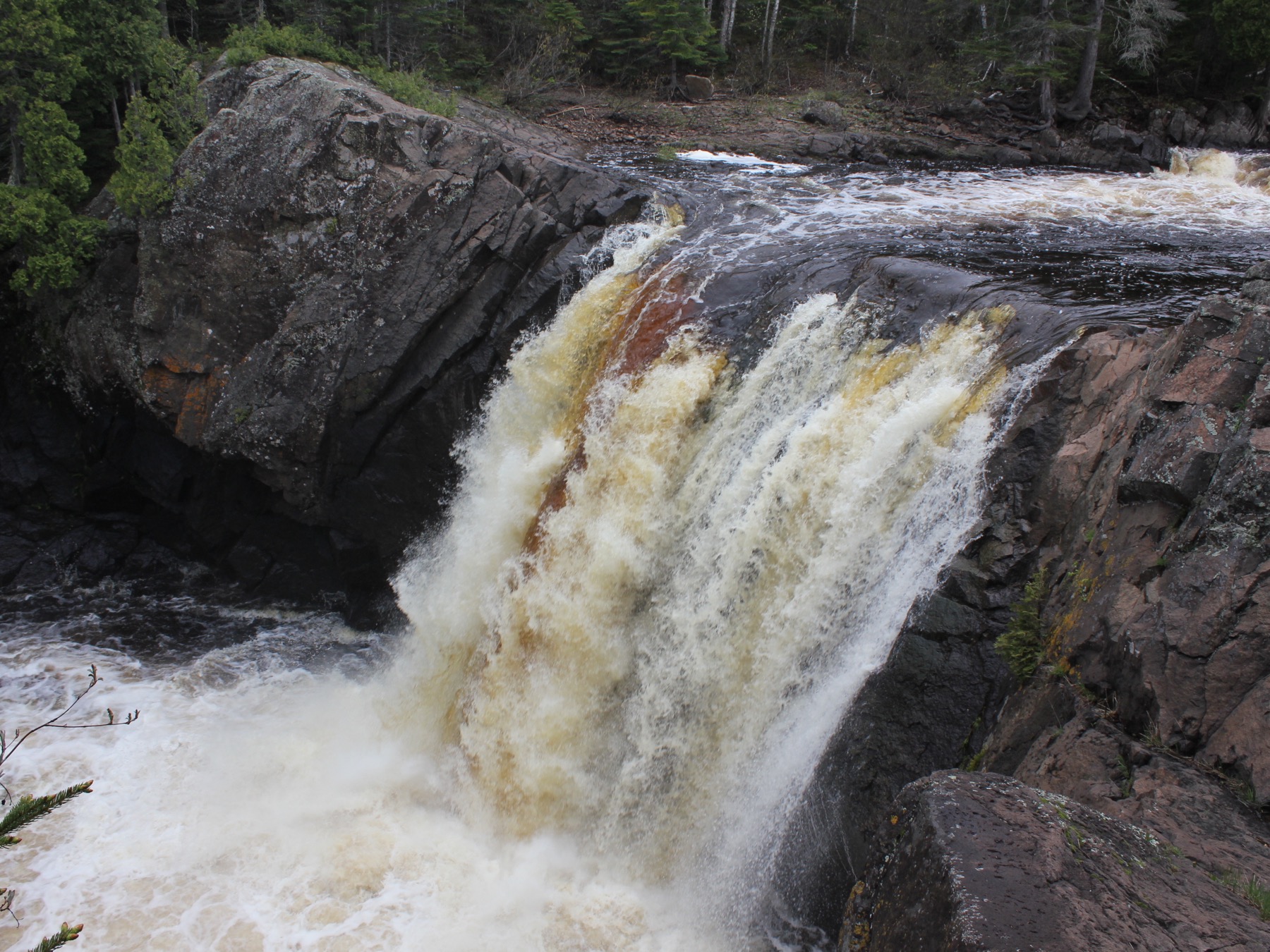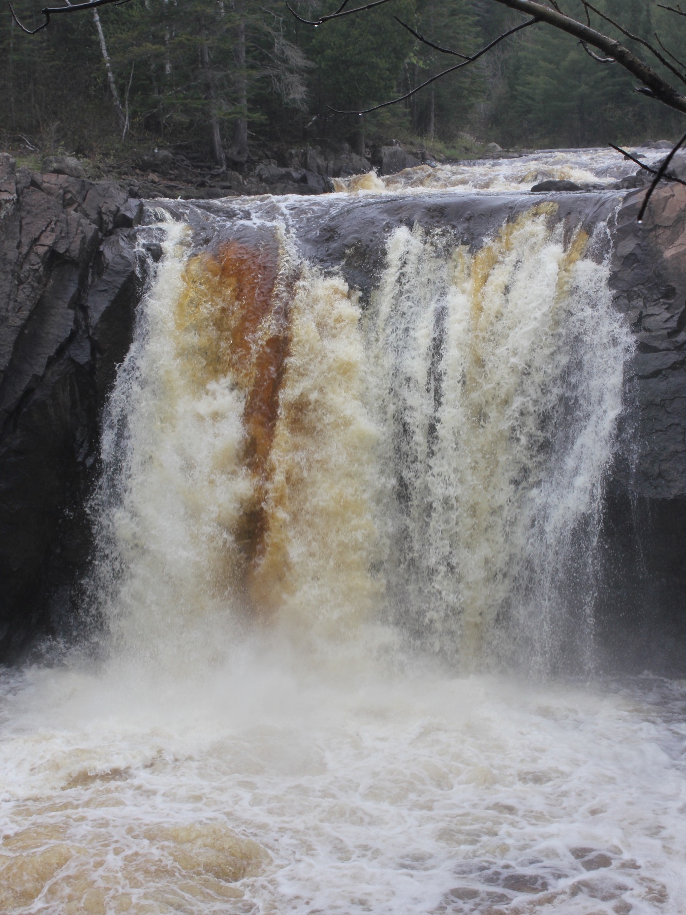 Devil's Kettle Falls, the Upper Falls of the Brule River, the High Falls of the Pigeon River, Cross River Falls, Gooseberry Falls, and the Temperance River Gorge are all along Minnesota's north shore.