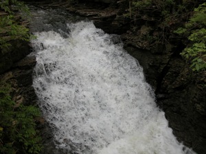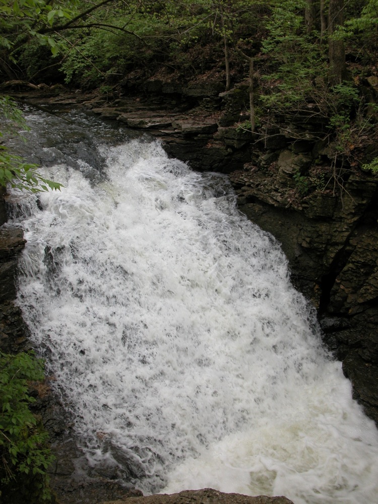 I visited this falls in both early May of 2009, and late May of 2008. In 2009 the views from the platform on the west side of the falls had a much clearer view than in the previous year. I do not know if this because less foliage was out, it being a couple weeks earlier in the year, or if they had cleared out some of the trees blocking the view.