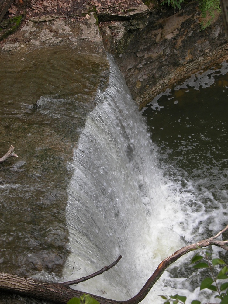 Indian Run Falls is located in a city park in Dublin Ohio. This is a small urban waterfall, but the gorge is deep an interesting. Trails wind along the edge of the gorge, but access into the gorge is not permitted, which is a shame because it is the only place you could get a really good view of the waterfall. There is a bridge spanning the gorge below the falls, but it has been closed since at least May 2008.