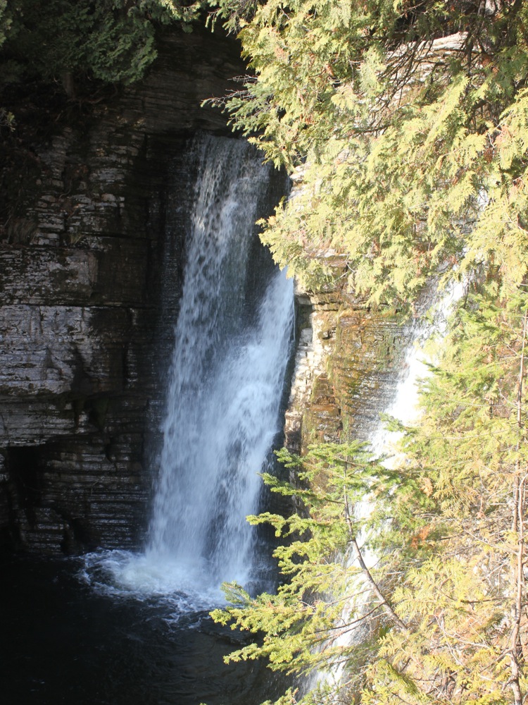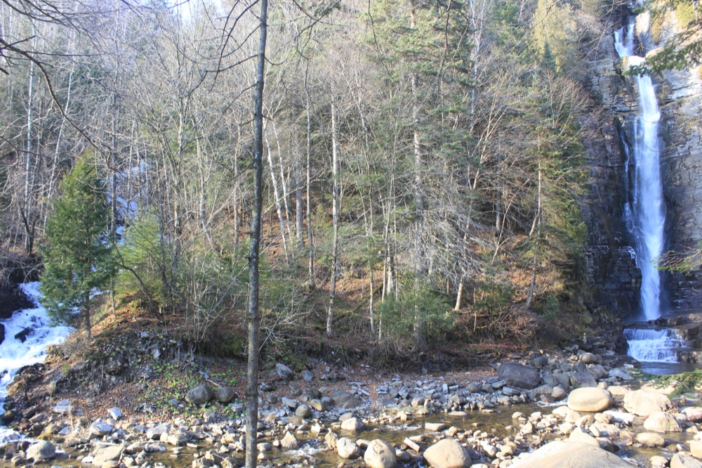 Another interesting thing is that just downstream another stream cascades down into the Jean Larose River. This waterfall is unnamed as far as I know. Both falls are visible simultaneously from the far bank.