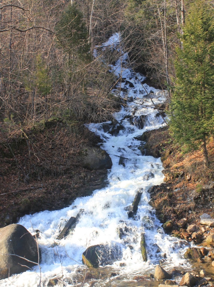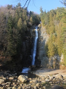 Reaching the falls is relatively easy. From the town of Beaupré, take Boulevard Beaupré north out of town. After 4 kilometers, the road crosses a bridge. Just beyond this there is a parking area on the right side of the road. The trail leads off to the right back towards the bridge. The trail is about 1 kilometer long. The trail is easy and level until it reaches the stairs. There are 400+ stairs down to the bottom of the falls. The stairs are very steep, and have seen a lot of weathering. At least one step is missing.