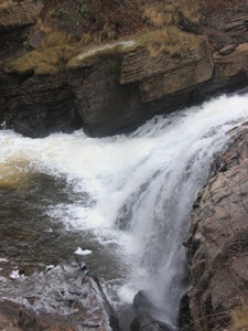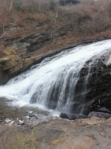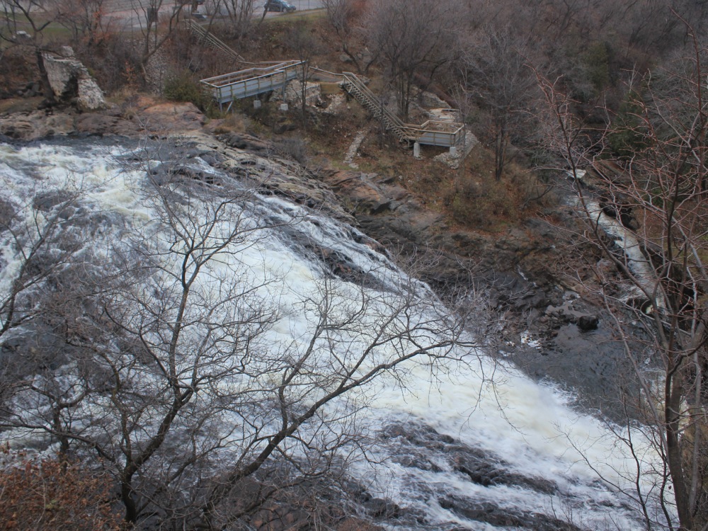 There is a small park at the falls. There are viewing platforms on the left side of the falls. The falls can also be seen from the road above the right side of the falls, but the view is a bit obstructed. You can also get an an obstructed head on view of the falls from the road above the falls. The ruins of old mills can be seen at the park.