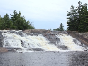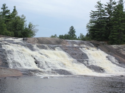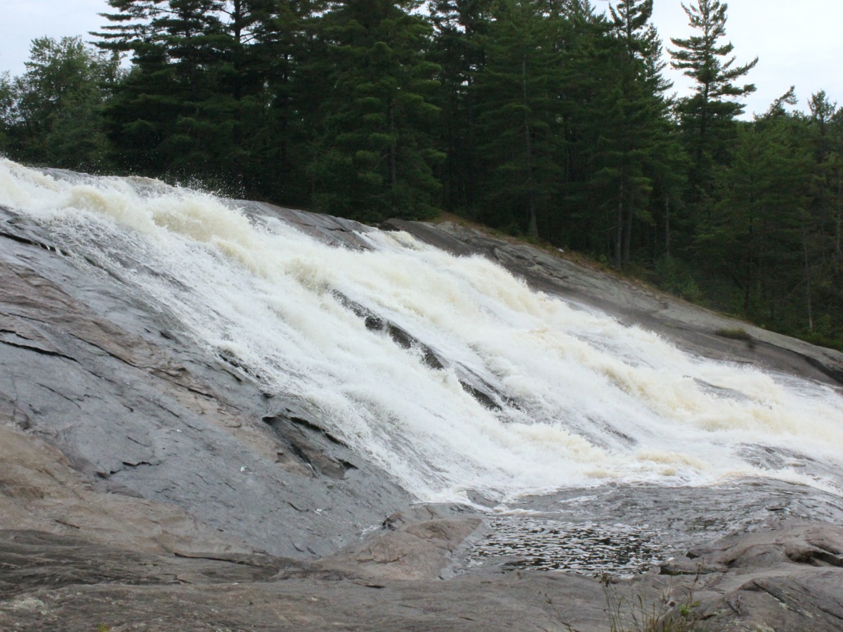 Lampson Falls is a large slide on the Grasse River. It is 40' high, and 100' feet wide, making it the largest of the many waterfalls on this river. It is a very popular waterfall, but it is big enough to share.