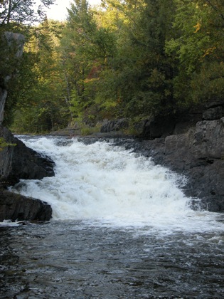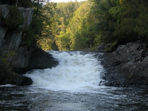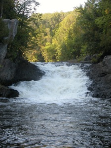 Lasalle Falls is a 20' drop on the Pine River. Like many of the waterfalls in the area, this is a slide falls, longer than it is tall. This is a wild waterfall with no fences or railings reached by a one mile hike. The falls is runnable by kayak.