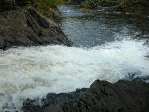 The falls is located north of County Highway C. C intersects Route 101 to the west, and County Highway N to the east. From Highway C take LaSalle Falls road north and follow the signs. This is a dirt road that is a bit rough at points. The parking area for the falls is about 2.5 miles from Highway C. The hike to the falls is about 1 mile long through woods. There are a few stairs near the beginning of the trail, but it is mostly level after that. The trail ends at brink of the falls. A steep scrabble will take you down into the gorge where you can get some nice views of the falls.