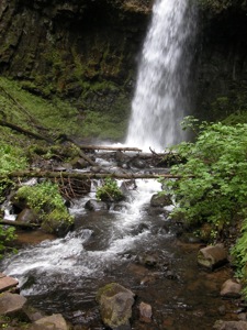 There are a lot of waterfalls in the Columbia River Gorge. The much more easily visited Latourell Falls is a mile downstream. A 10 mile drive east will take you past Bridal Veil Falls, Wahkeena Falls, Multnomah Falls, Oneonta Falls, Horsetail Falls, and many others.