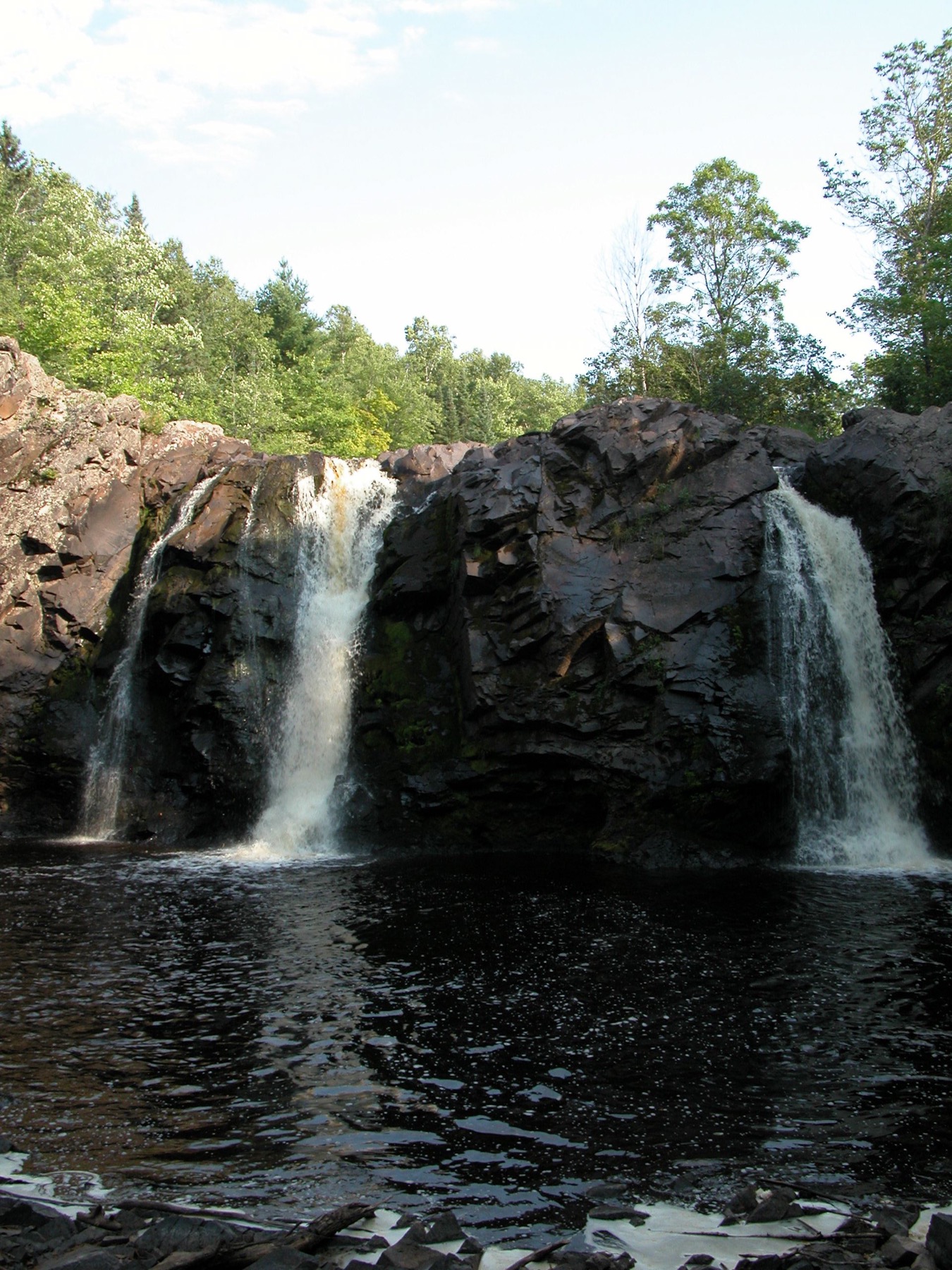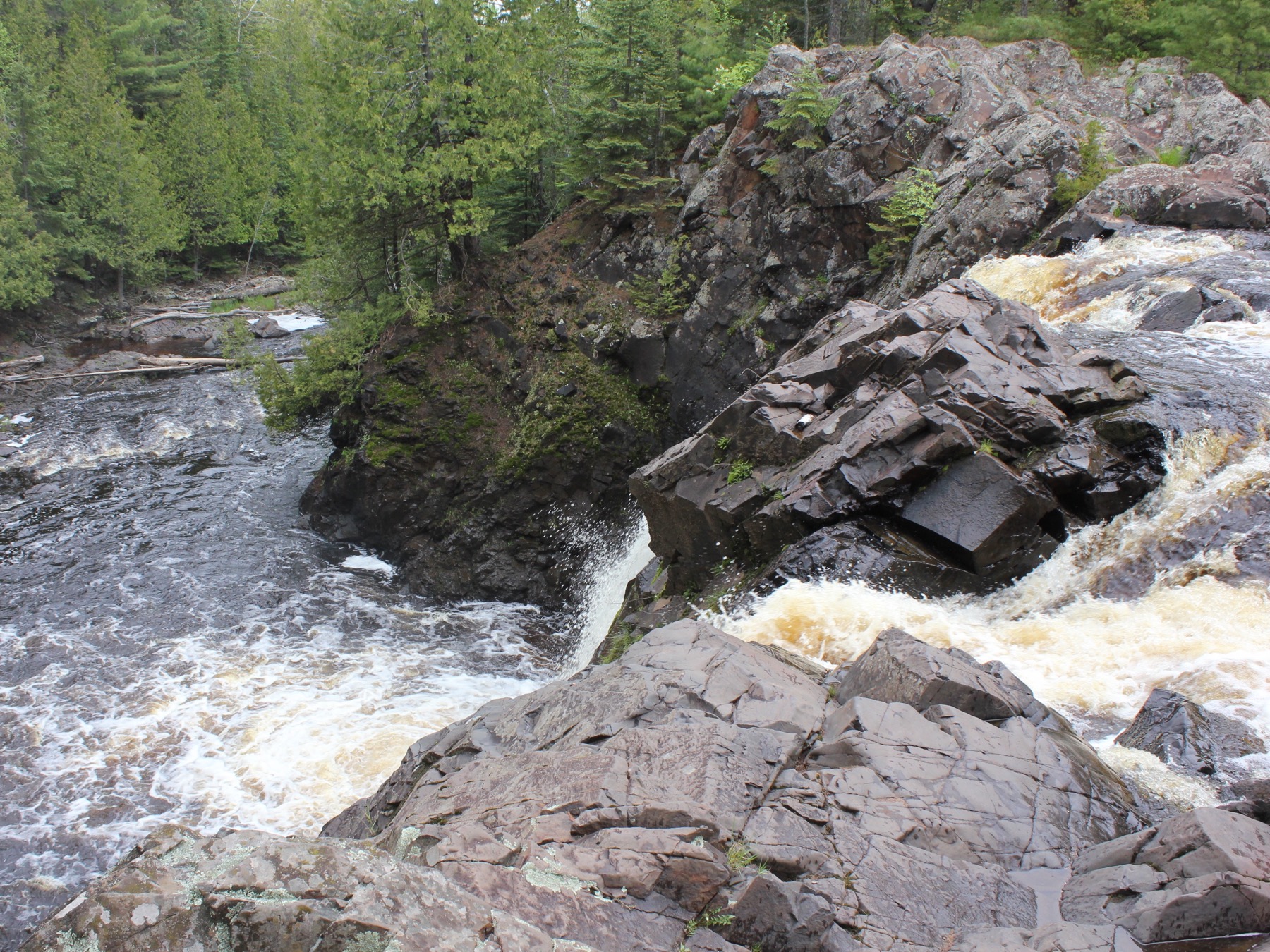 The Big Manitou Falls are downstream and can reached on foot or by car. Amnicon Falls and Snake Pit Falls are in nearby Amnicon Falls State Park. Little Manitou Falls is part of the Lake Superior WaterFall Tour.
