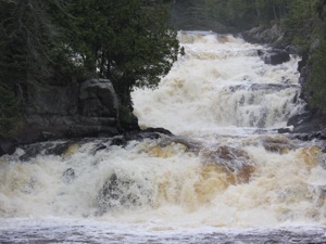 The Manitou Cascades are a multi tiered falls on the Manitou River located in George Crosby Manitou State Park. This is a wild waterfall, and a wild park. The state park is designed for backpackers. There are minimal facilities and all the campsites require a hike of at least a quarter mile hike. The hike to the cascades is 1 mile one way.