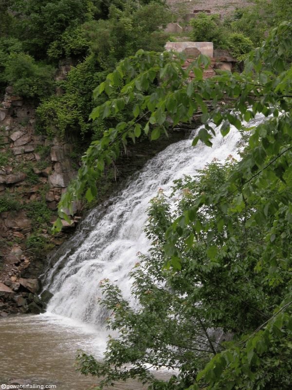 Mill Creek Falls, also known as Cataract Falls of Mill Creek, is hidden away in the city limits of Cleveland. There is a small park and history center at the falls. In 2004 there was only a single observation deck near the brink of the falls from which you can get a partial view of the falls. In 2005 they had added another observation area farther downstream from which you can get a heads on view of the falls. Unfortunately when I visited in 2005 there was little water and bad lighting.