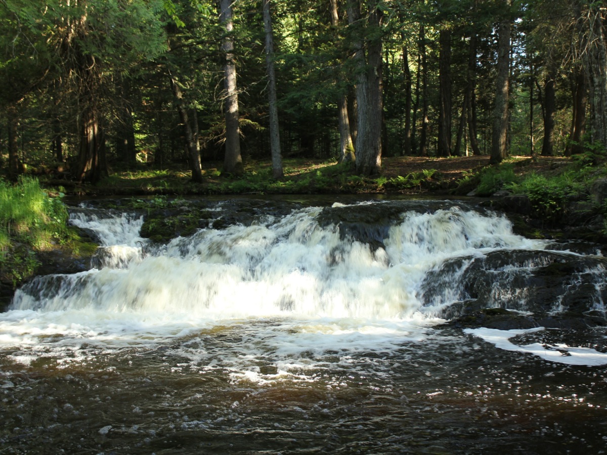 Kakabika Falls is located off of US 2 about halfway between Watersmeet and Marenisco. Turn north on to Road 527 and head .5 miles to the bridge. There is a parking area just south of the bridge. Park here and hike downstream to see the falls. There is a trail.