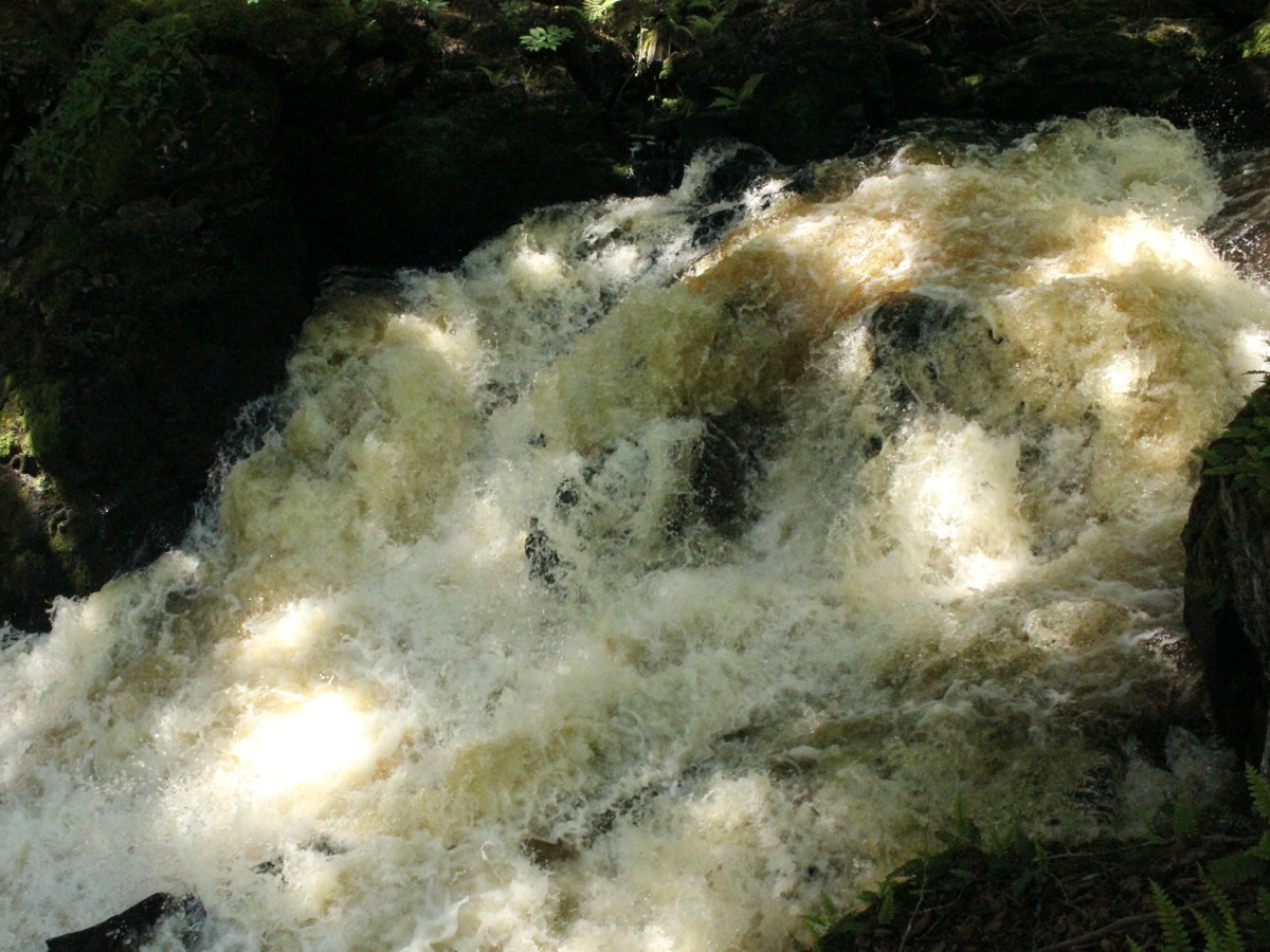 I visited this falls on a bright sunny day, which made photography difficult. The picture shows the final drop which is a long narrow chute.