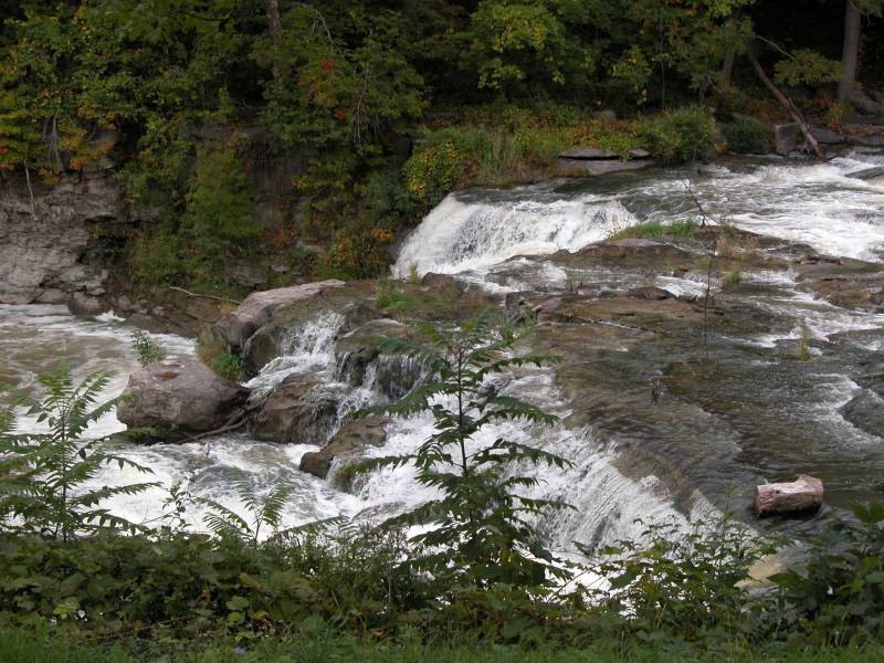 The falls is on Tonawanda Creek and appears to be about 20 feet high, and 50 feet wide. Indian Falls is on the Onodaga Escarpment, which is responsible for a number of falls in Western New York, including Akron Falls. Upstream about 1/2 mile of Indian Falls you can find Little Falls. Just follow Little Falls road and look for a parking area on the left side of the road. This is a cascade with a gradual drop of 5 to 10 feet. The land around this falls appears to be public and there are some trails along the river bank that lead to the falls.