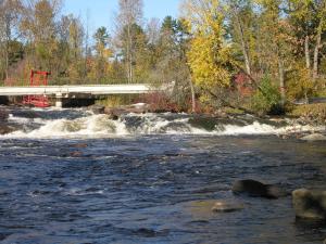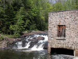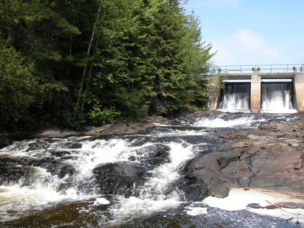 The falls is easy to find. From Thessalon head north on Hwy 129. When 129 takes a big turn to the right, turn left on to Little Rapids Road. You will see the dam on your left in a half kilometer. Before the dam there is a dirt road on the left leading down to the Ken McColman Fish Hatchery. There is a sign. You can park here and see the lower part of the falls, and then walk upstream to the dam. You can also park by the dam and work you way downstream.