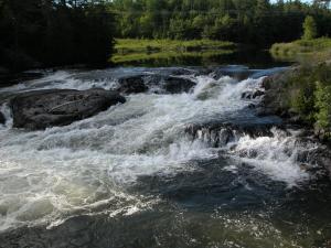 Little Rapids is a small waterfall located in the town of Little Rapids, a few kilometers north of Thessalon. The Little Thessalon river tumbles over a series of small drops, with a total drop of about 4m. There are two distinct sections to the falls, one just below the dam, and the other a short distance downstream by an old hydroelectric plant. There are rough trails between the two along the river banks.
