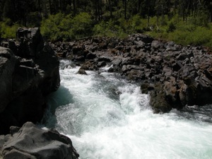 Little Illinois River Falls is located in south western Oregon on the Illinois River, in Siskiyou National Forest, just north of Cave Junction, along US-199. This is a very minor waterfall, especially compared to all the many spectacular waterfalls Oregon has to offer. The river is funnelled through a narrow rocky channel, but only drops about 10 feet. It is a scenic site, but not spectacular, and even within Siskiyou there are far more impressive falls. But it is a waterfall, is listed on maps, and is close to a major road.