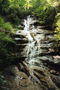 This small 50' waterfall is in Jones Gap State Park in South Carolina. Jones Gap State Park is 25 miles northwest of Greenville off US 276 and 11 miles northwest of Marietta. The Falls is roughly 2(?) miles from the Jones Gap Trail trailhead. The falls themselves are not particuarly impressive, but the general area is quite lovely. The trail follows the Middle Saluda River closely. There are lots of cascades and small falls along the river.