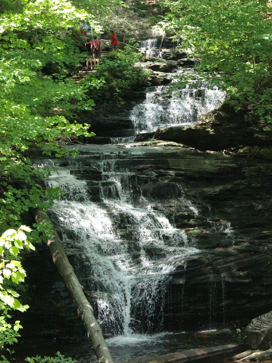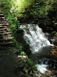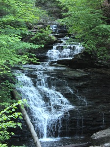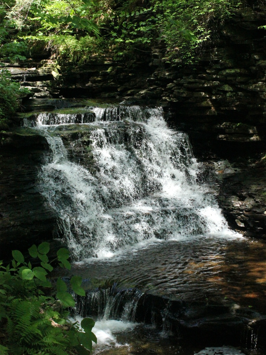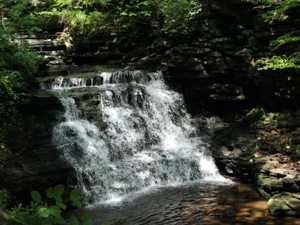 Mohican Falls is the third significant waterfall from the bottom of Ganoga Glen. Kitchen creek drops drops 39 feet in two roughly equal drops. The creek curves a bit in between the two drops, making it a little difficult to see both drops at the same time.