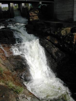 This waterfall is the Muskoka Falls on the south branch of the river, and is therefore marked as Muskoka (South) Falls on many maps, or simply as South Falls.