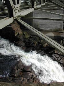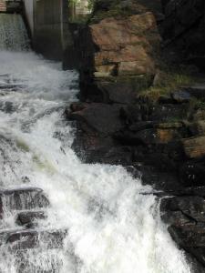 Just east of the falls are the pipes that carry the diverted water. As late as 2007 these were still old wooden pipes that had sprung leaks in many places. They have since been replaced with green metal pipes.