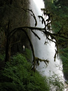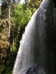 Middle North Falls is located in Silver Falls State Park. A side trail leads under this 106 foot waterfall. Like Lower South Falls the trail is close to the waterfall, making for some interesting photo opportunities. Of the four most impressive falls in the park, this is the most remote from the main parking areas. It is about 1.5 miles from North Falls parking area, and 3 miles from the South Falls parking area. But it is only .7 miles from the Winter Falls parking area.