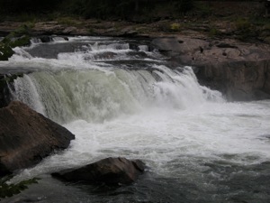 This waterfall looks best in medium water levels. In high waters the 20 foot drop gets swamped, as can be seen in one of the photos below. On the plus side the waterfall is guaranteed to have water, unlike the other nearby falls, such as Cucumber Falls.