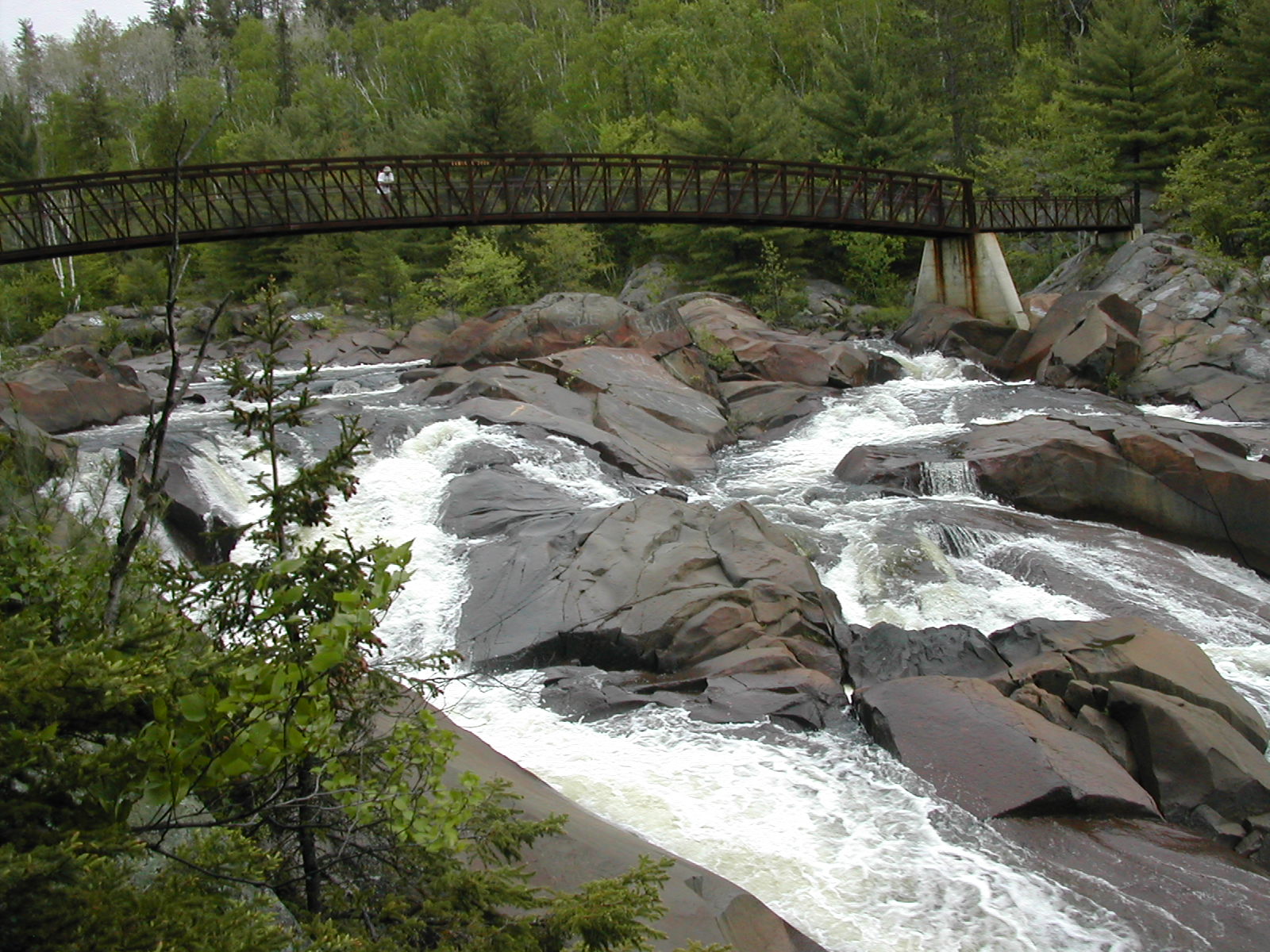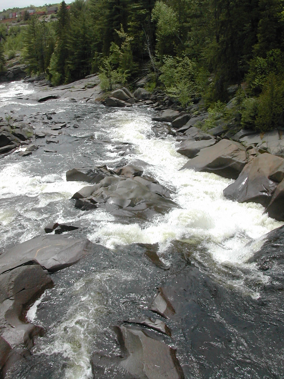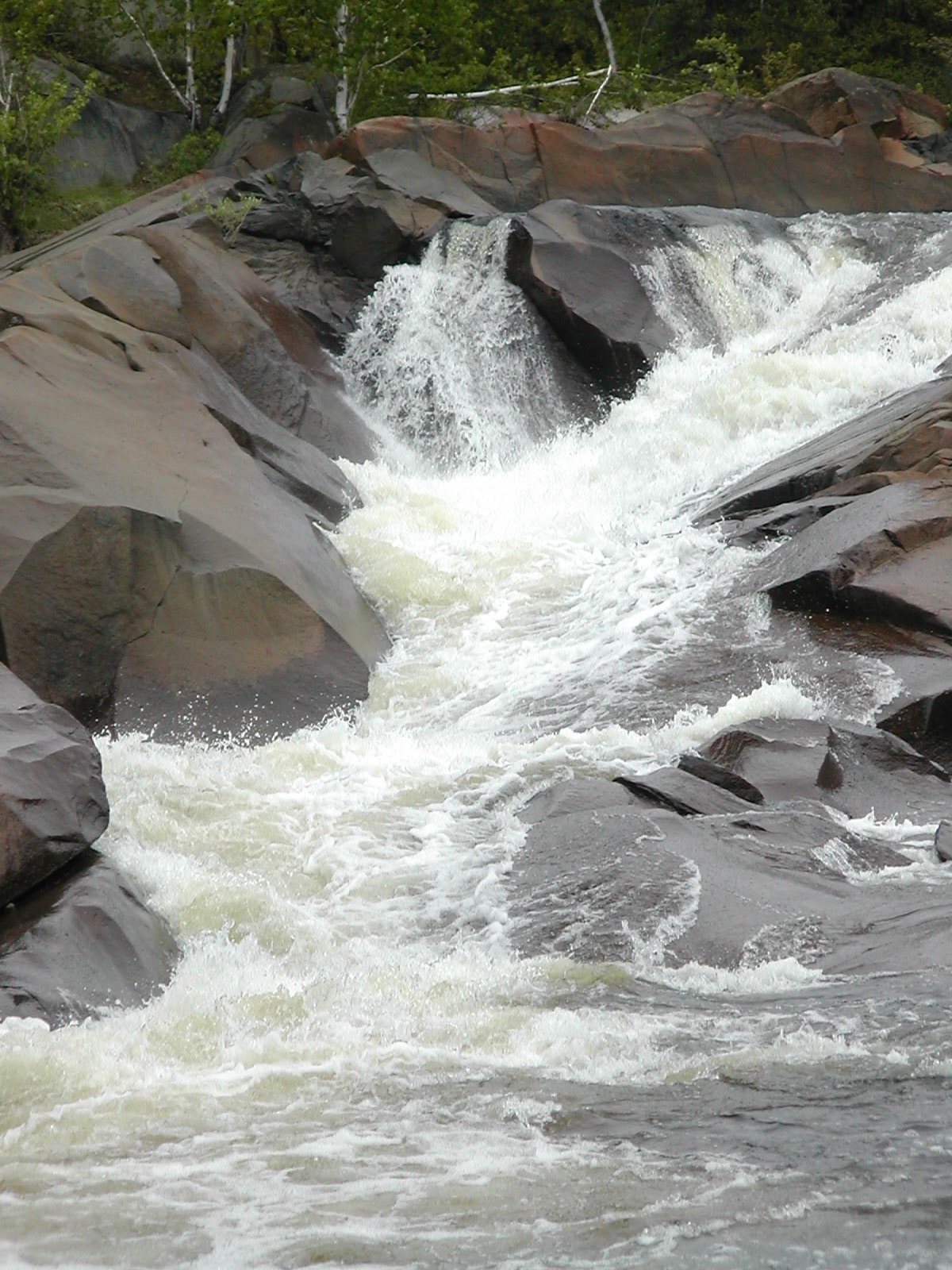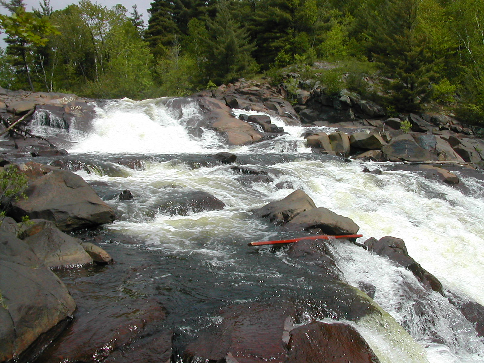 The Onaping River drops over 150 feet here in a series of drops, the largest of which is the 30 or so foot final drop. Each of the individual drops is interesting and many would qualify as named waterfalls all by themselves elsewhere. A trail climbs up across the rock alongside the falls allowing you plenty of opportunities and vantage points to view different parts of the falls. It also provides the locals with easy opportunities to write graffiti on the rocks.